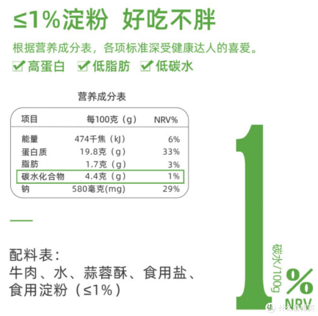 配料表极其干净,只有:牛肉、水、盐、淀粉、香辛料,五个基础食材和简单调料,没有防腐剂。