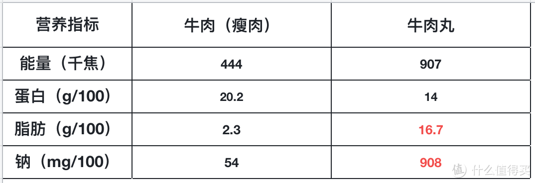 所以和纯瘦肉相比,肉丸蛋白偏低、脂肪和钠偏高的,5-6颗牛肉丸的钠含量就基本占成人每天需求量的一半了。