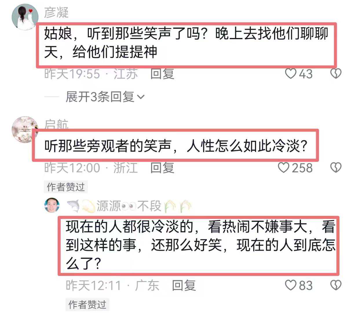 大桥上的笑声,去世后的指责,自私而无逻辑的要求,这些人让人再一次见识了人性的丑陋,女孩在选择死之前经历了无法承受的痛苦,在临死前又经历了绝望,见证了人性的冷漠,希望她能去一个干净的地方,不要再经受世间的腌臜。