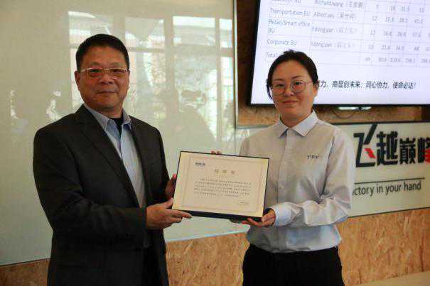 随后,宣总裁授权上海SiteHR处长Klaus向集团副总裁兼OBM中国区MNT/PD/HTVBU总经理陈涛授旗,正式启动商显未来五年发展计划,成立Corporate、Retail、Medical、Education、Transportation5大BU,以及7大Site组成的商显业务团队,以全新的战略布局,开拓PD市场新局面。接旗后陈总致辞表示,此次从AOC+PHP双品牌运营模式转变为针对行业划分的五大BU运营模式,正是集团面向市场的有力变革。同时,按五大BU划分设下全新的考核指标。未来,希望各BU聚焦行业市场,实现全面突破!也期望集团各site,各单位能够鼎力配合,与五大BU业务团队同心协力,取得更卓越的市场成绩,做到“利剑出鞘,所向披靡”!
