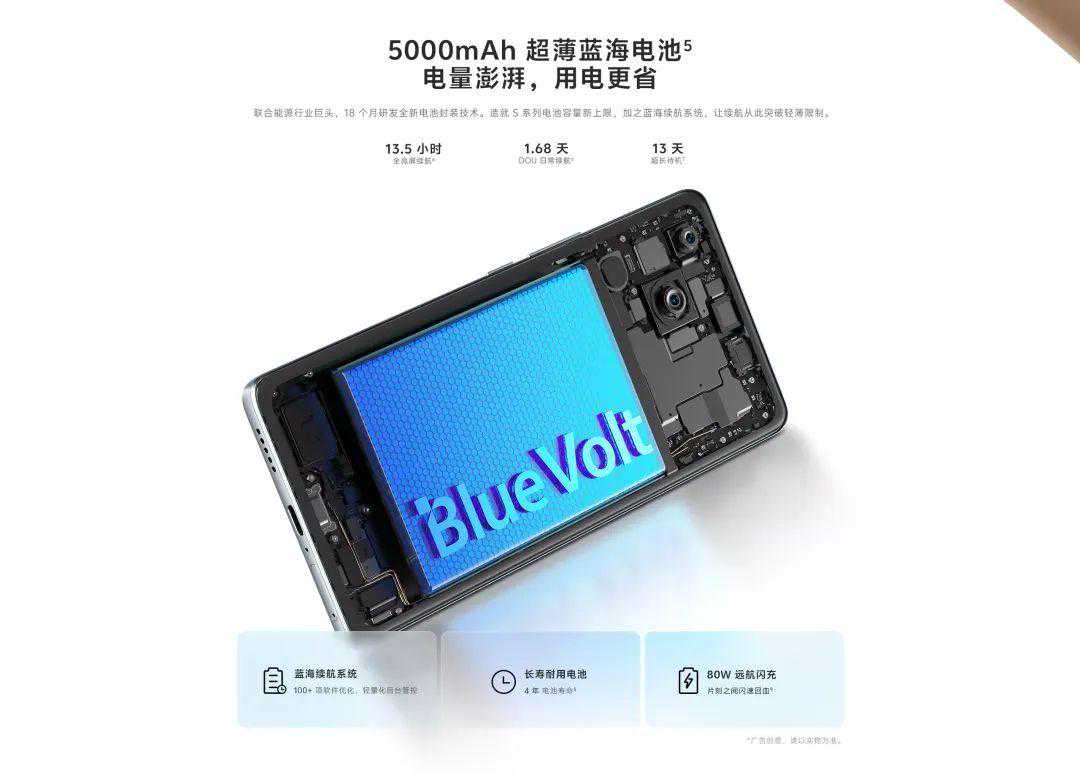 vivoS18搭载了超薄“蓝海电池”。据悉,这是vivo与行业锂电池龙头联合研发的产物。在减小体积的同时增加电池密度,为vivoS18带来了超大电池容量,同时将手机的厚度控制在仅有7.45mm!完美兼顾了大容量电池以及轻薄手感两个方面。再加上vivo自研的蓝海续航系统100多项省电优化,全面提升续航时间。