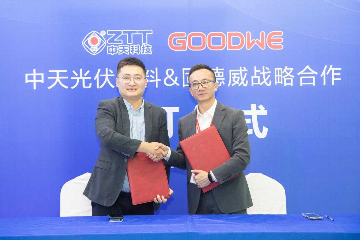 展会现场,中天科技与固德威电源科技签订战略合作协议,在新能源业务系统解决方案、资源开发等方面将进一步深化合作,实现优势互补、共赢发展。