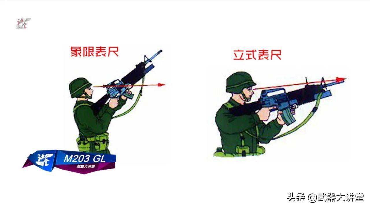 这两个瞄准具是分开使用的,前面的立式表尺主要用于点目标瞄准,后部的象限瞄具用于面目标瞄准,所以在使用面目标瞄准的时候,一般会把枪举的比较高,使榴弹到达目标的时候能朝下飞到目标区域,实现面杀伤效果。