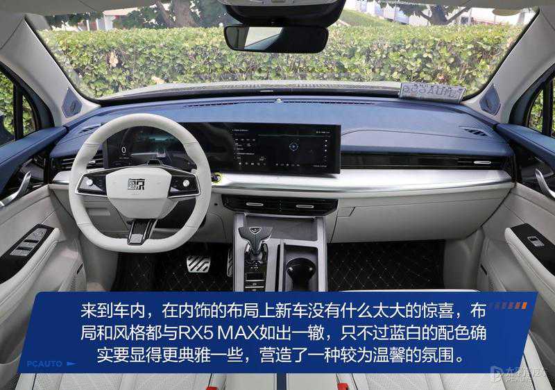 进入车内,最能体现海元素的就是这套蓝白配色的内饰了,在整体设计上这款新车并没有太新鲜的亮点,除了排挡杆的造型外,可以说与RX5MAX一模一样。方向盘的握感算是这个级别中比较优秀的,气囊盖的中央部分也替换成了这款车专属的Logo。中控这块搭载高通骁龙8155芯片的中控屏尺寸为12.3英寸,内置了一套基于斑马打造的达摩巨鲸智联系统,这套系统能够让中控屏与液晶仪表更好地进行信息互动,比如沉浸式地图导航、AR-Driving和一系列小程序应用等功能。