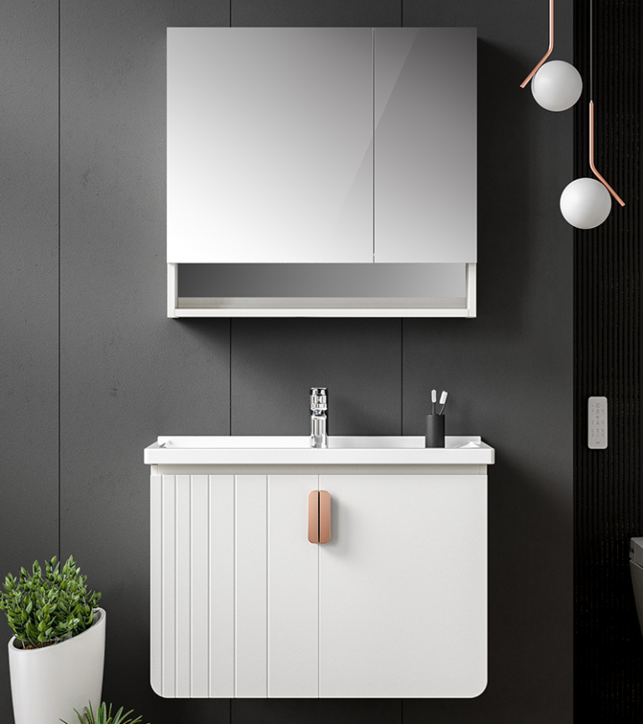 浴室柜一般是由浴室镜柜+台盆+主柜组成的,镜柜一般都会设有收纳空间,主柜则有台面+台下盆,台面+台上盆,一体盆三种结构的,主柜结构有的会带有抽屉,增加主柜的收纳空间。