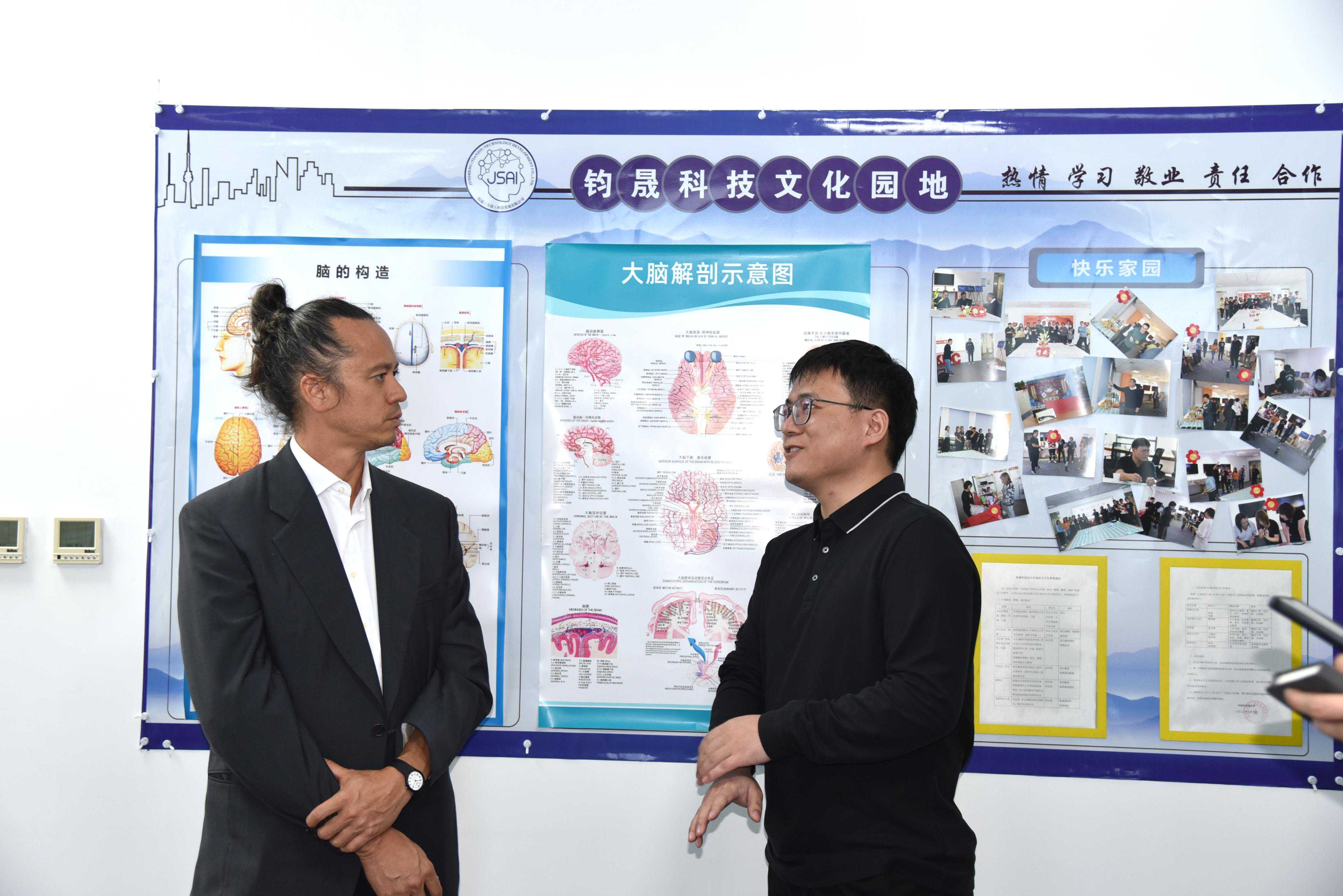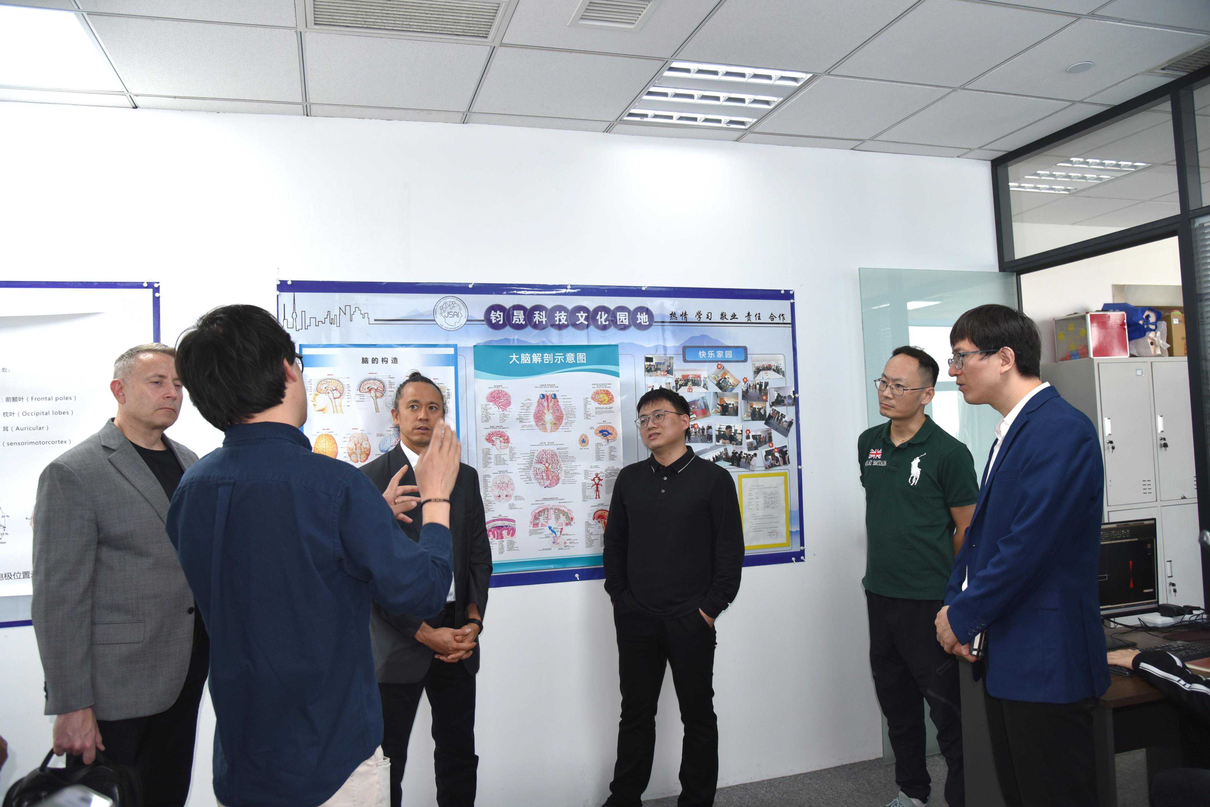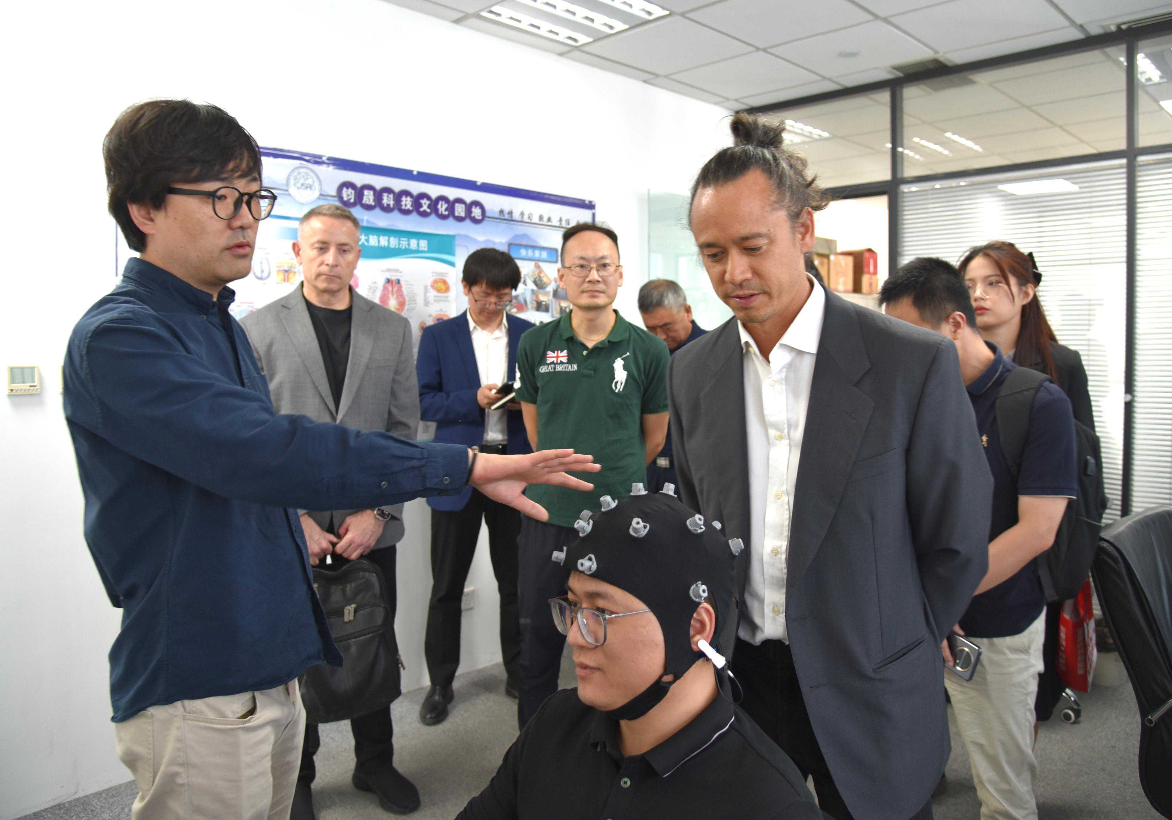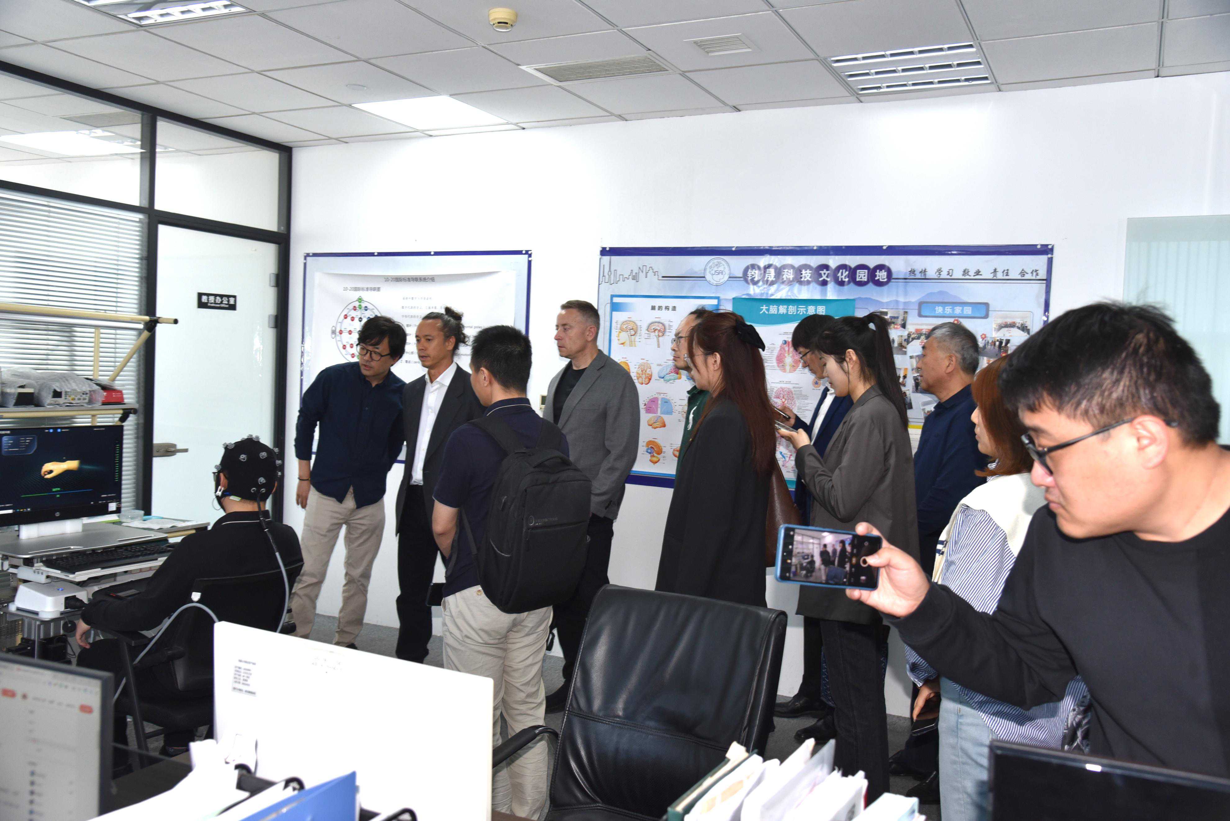 4月12日,加拿大神经科学技术公司InteraXonCEOJean-MichelFournier、CTOChrisAimone在天津市南开区投促局、盈趣科技(002925)、北洋脑机接口与智慧健康创新研究院等单位领导陪同下,到位于天津博创园的钧晟(天津)科技发展有限公司(钧晟科技),参观交流。钧晟科技总经理陈云刚、研发副总马超等,接待并介绍了钧晟科技在脑机接口技术开发、产品应用等方面情况。