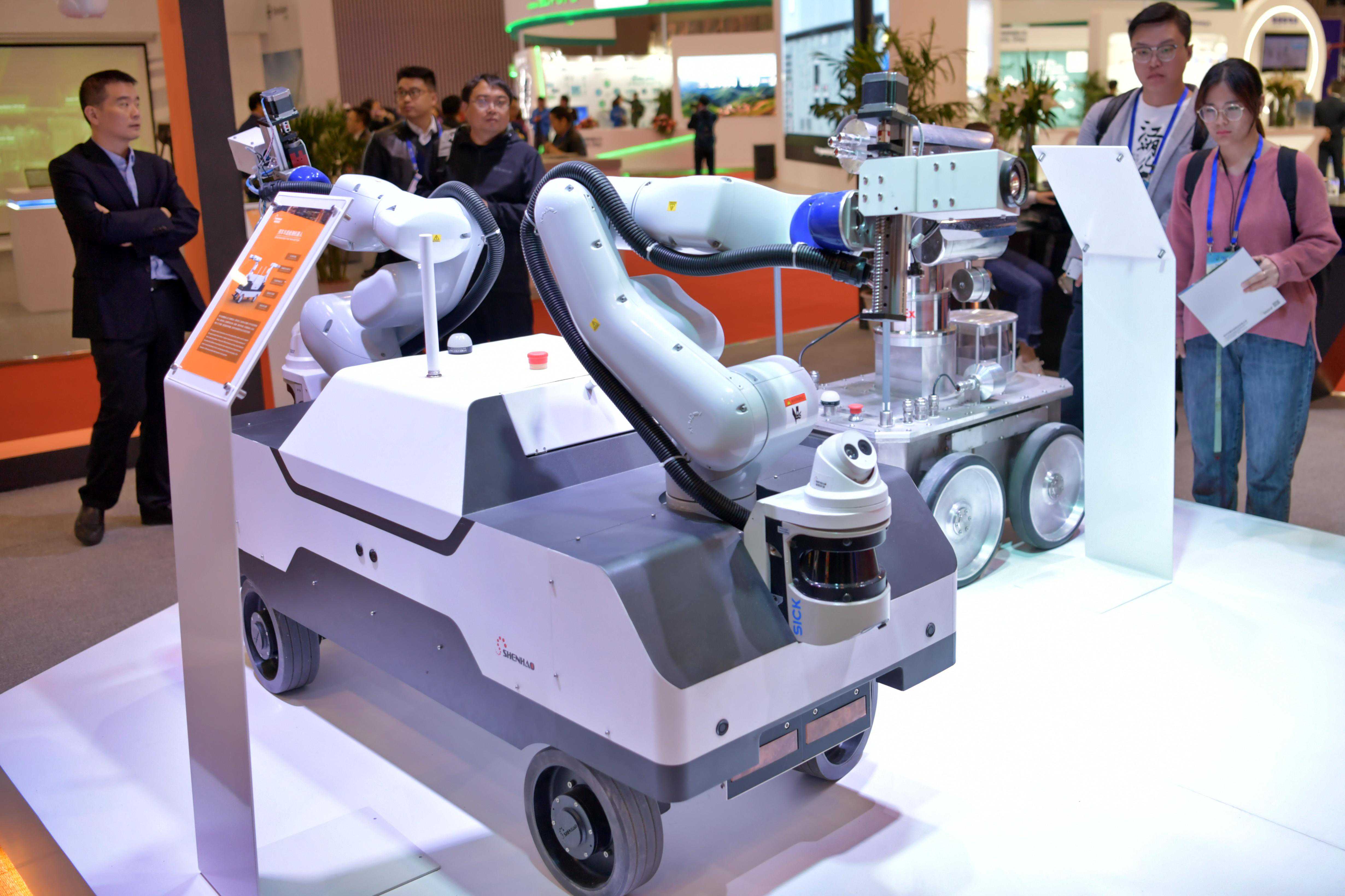 在山西阳泉煤业集团展厅,工作人员操纵了一台瞪着两只大眼睛、履带行进的变电站智能巡检机器人。“这个小东西可代替人工完成特定环境下的设备检测工作,能高效处理信息且使用便捷灵活。”工作人员说。此外,管道检测机器人、识别着火点的防爆蛇形机器人、矿用侦测灭火机器人等也各具特点,让人叹为观止。