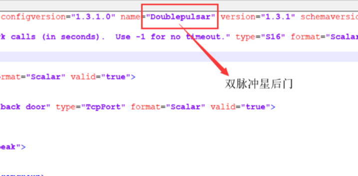 通过对病毒文件的分析,发现了变种在探测到系统存在永恒之蓝的漏洞后,会在系统中安装双脉冲星后门,方便病毒的再生与传播。