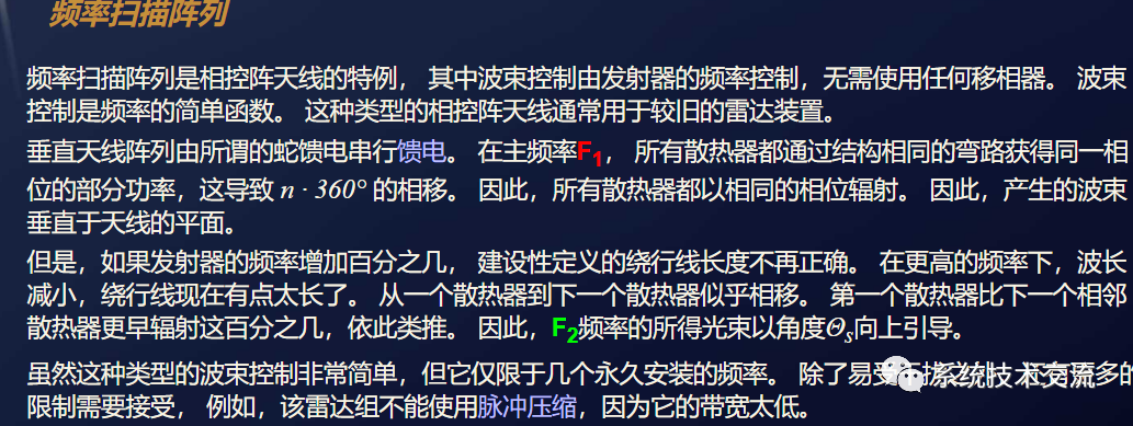 因此,频率的变化不会影响相位差。这样做的好处是计算机可以忽略进料线的长度在计算相移时。这是雷达组频率捷变的优势,也是频率分集和脉冲压缩的要求。