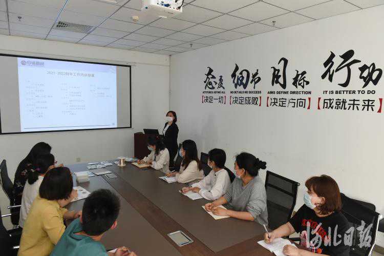 2021年5月7日,位于石家庄北大科技园的中诺新材公司的员工们在商讨项目。记者史晟全摄影报道