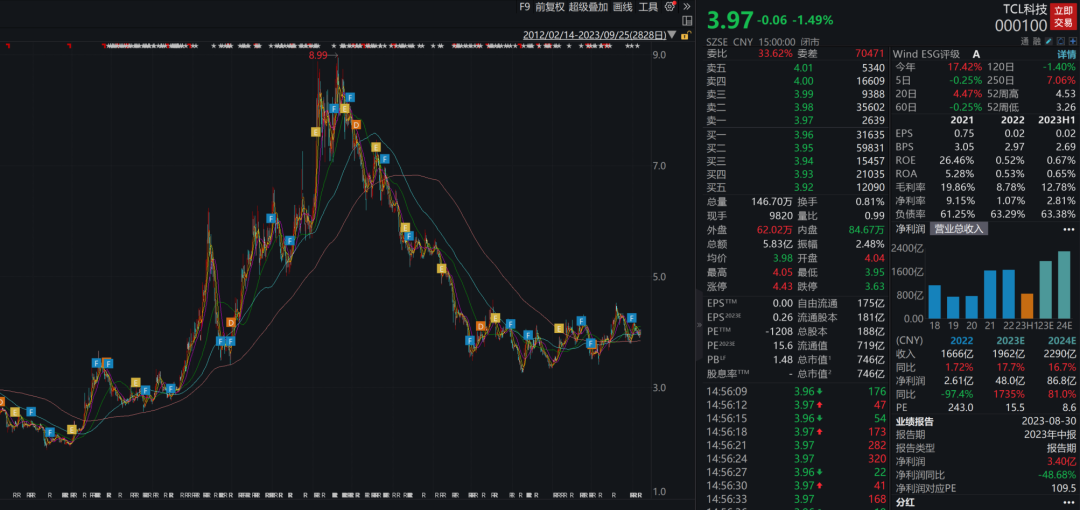 因此,从2023年半年报业绩来看,TCL科技短期依然会受到面板亏损的拖累,走出困境比较艰难,当然也表现在了公司低迷的股价上面。