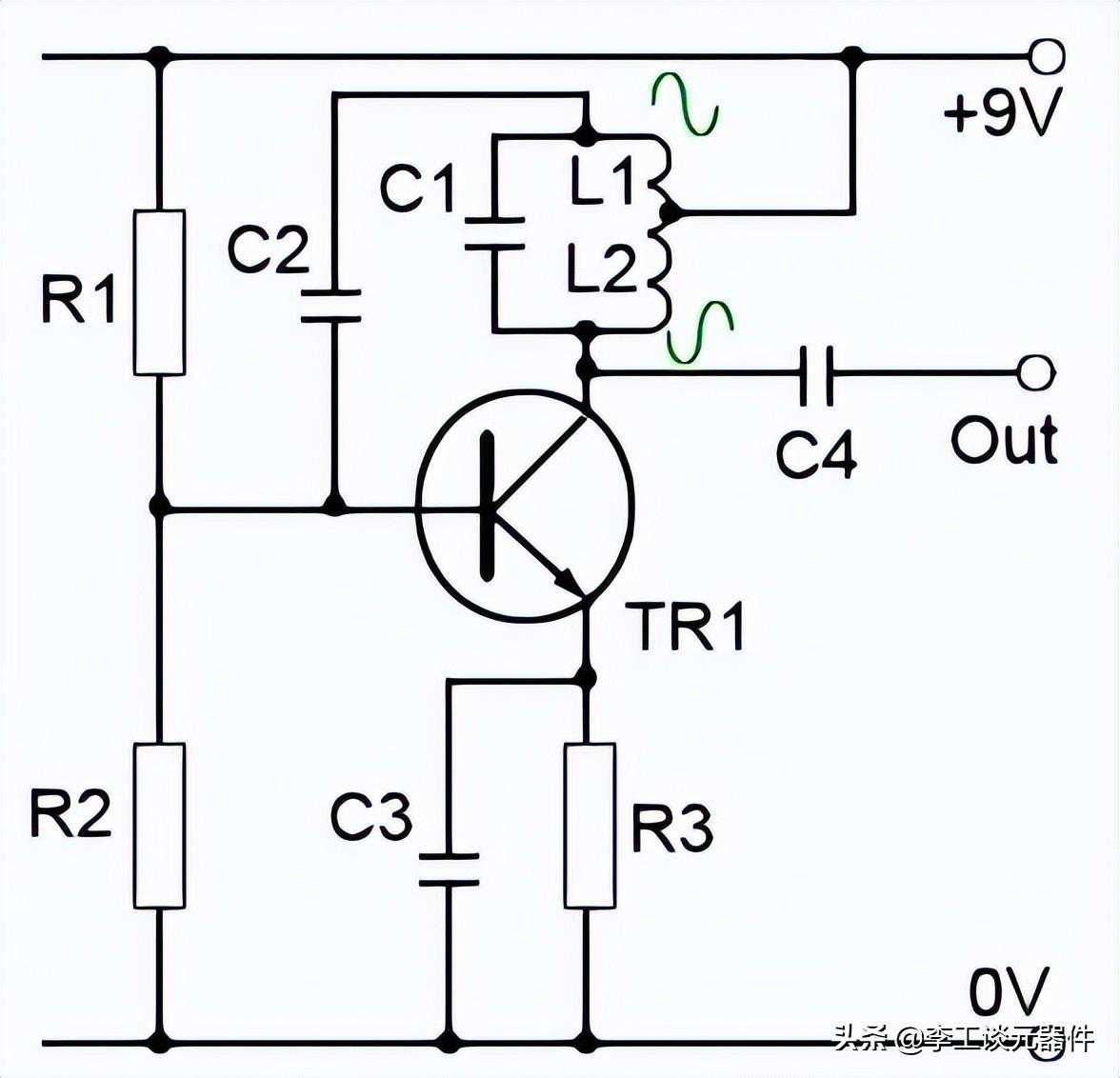 调谐LC电路连接在晶体管放大器的集电极和基极之间。就振荡电压而言,发射器连接到调谐电路线圈上的分接点。