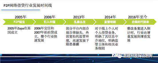 这是我们行业监管的时间线,我们从2005年有了P2P元年,国内有宜信和拍拍贷,后面进入快车道,一直到2013年,发展很快,当然也遇到很多问题,这个时候很多隐患暴露了,有一些经营不善或者跑路的。到2014年有一些监管的落地,监管方案的出台,明确监管主体和相关的业务细则。2016年我们进入了备案的倒计时,原来追求量到现在追求质,但是其实量也没有降低,还是在保持一个快速的增长。整个过程的发展是我们的合规之路。