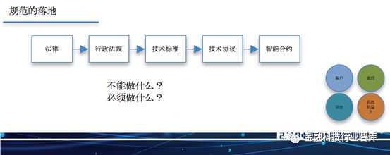 另一个,你们是不是相同的目标客户。再一个,我们过去共享的是客户的信用数据,基础的信用数据,但这些非常敏感,万一泄露了怎么办。是不是你共享你的信用评价,大家最近也在做银行存管的系统认证,银行卡信息以及结算的基本信息,哪些是能够共享的,哪些是哪个机构掌握,你只要把结算结果共享出来就可以了。但是这些要有相应的规范和标准,我们互联网金融科技委员会现在也有很多的成员机构一起在探讨整个技术标准的制定,制定团体标准和行业标准,把过程里一是合规的需要,怎么样低成本、高效率合规,二是发展的需要,在合规过程里我们不是为了合规而简单合规,我们最终的目的还是要发展,发展上我们样能提高共享的效率,安全的共享,不简单共享一个数据,可能共享的是信息,是加工后的数据。在这个共享上,怎么保证这个数据是真实的,大家拿到的基本数据我知道是真实的,但是他过往的信用记录,甚至只是一个客户画像、客户评价、信用评价,结算结果甚至结算路径,比如我们现在讲的要求各个从业者不能做无场景的应用,最近有这个要求。怎么相同保证结算的路径是合规的,这个时候你所有的数据流、每一步的操作,是不是可查可审计不可篡改。所以我们这么一个设计,它是基于区块链的分布式账本,这样一个分布式的应用或者另一个说法是去中心化的应用,它的数据是链下存储的,这个数据你既取得了合理的共享,是点对点的共享,又能够保证数据的安全。还有一个很重要的特性,区块链只能读写不能删除不能篡改或者难以篡改的。第三个,智能合约,在这过程里我们各方的权益或者责任义务是由代码来保证的,而不是说大家翻合同去看规范,看完规范以后你说可以,你做了一万笔业务,每一笔都要由人去看,每一个节点上都要由人去看,是不是对了,是不是符合规范。智能合约就是让各个合约一开始生成的时候是对的,那么它就是对的。如果不对的话大家就说,也会有bug,但相比而言有bug我们也有解决方案,你可以做补偿交易,至少每一步都是可查的。如果我们全是靠线下靠人工去做,这样这个合规成本极高,发展受限。