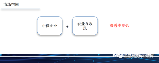另外一点,普惠金融不光盯着消费端,两个人群,一个是小微企业,整个金融供给上,原来都是做对公业务,大企业抵押类的,针对小微企业的这种金融服务,政府一直在呼吁,不论是银行要成立普惠金融事业部,还是我们互联网金融很多的从业者、很多的机构,也在做小微企业的。但是实质上这一块的渗透率比消费金融渗透率还要低。再一个是农业与农民,做得更少了。