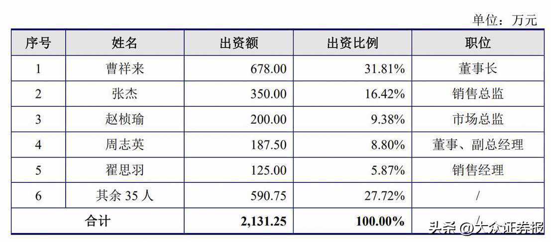 截至2023年6月30日,上海祥柠激励对象为公司骨干人员共计40人,在出资结构中,却仅具体披露了曹祥来、张杰、赵桢瑜、周志英、翟思羽5人名字,其他人统称为“其余35人”(见图二)。