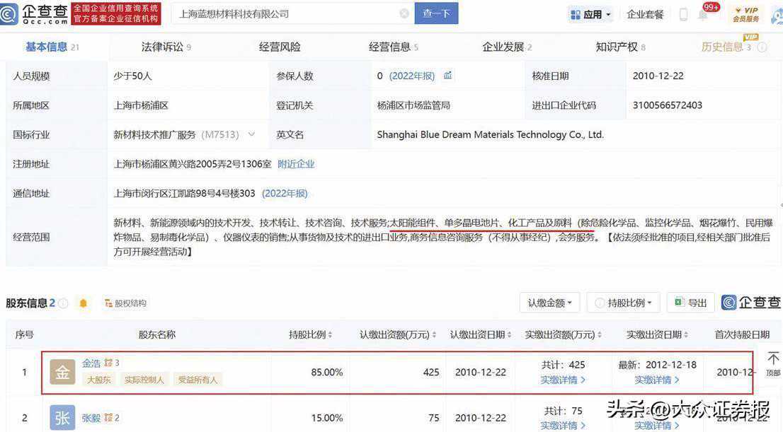 其中,在上海祥柠出资占比1.76%的金浩,还持股上海蓝想材料科技有限公司、河北健峰新能源科技有限公司。