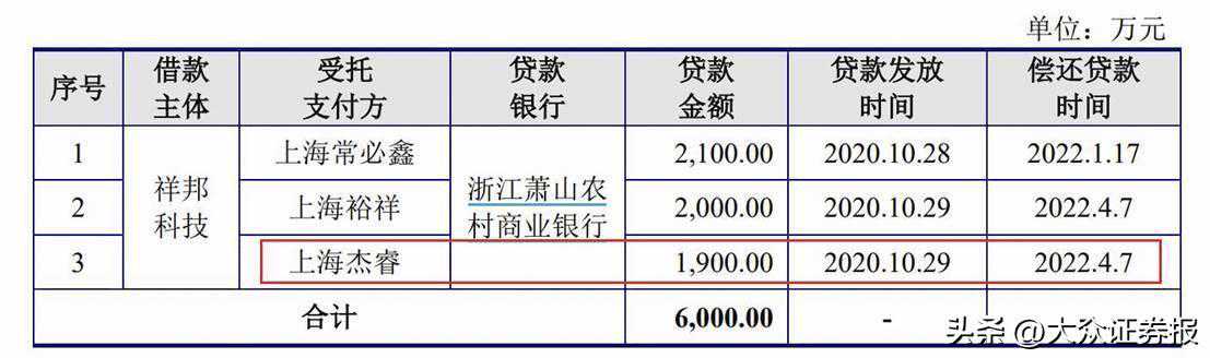 此外,祥邦科技还与员工关联企业存在大量资金往来,后者曾为祥邦科技提供转贷。值得一提的是,约定的偿还贷款到期前,该企业已注销。