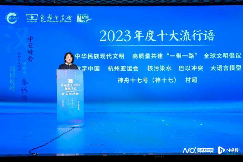 2023年度十大流行语是:中华民族现代文明、高质量共建“一带一路”、全球文明倡议、数字中国、杭州亚运会、核污染水、巴以冲突、大语言模型、神舟十七号(神十七)、村超。
