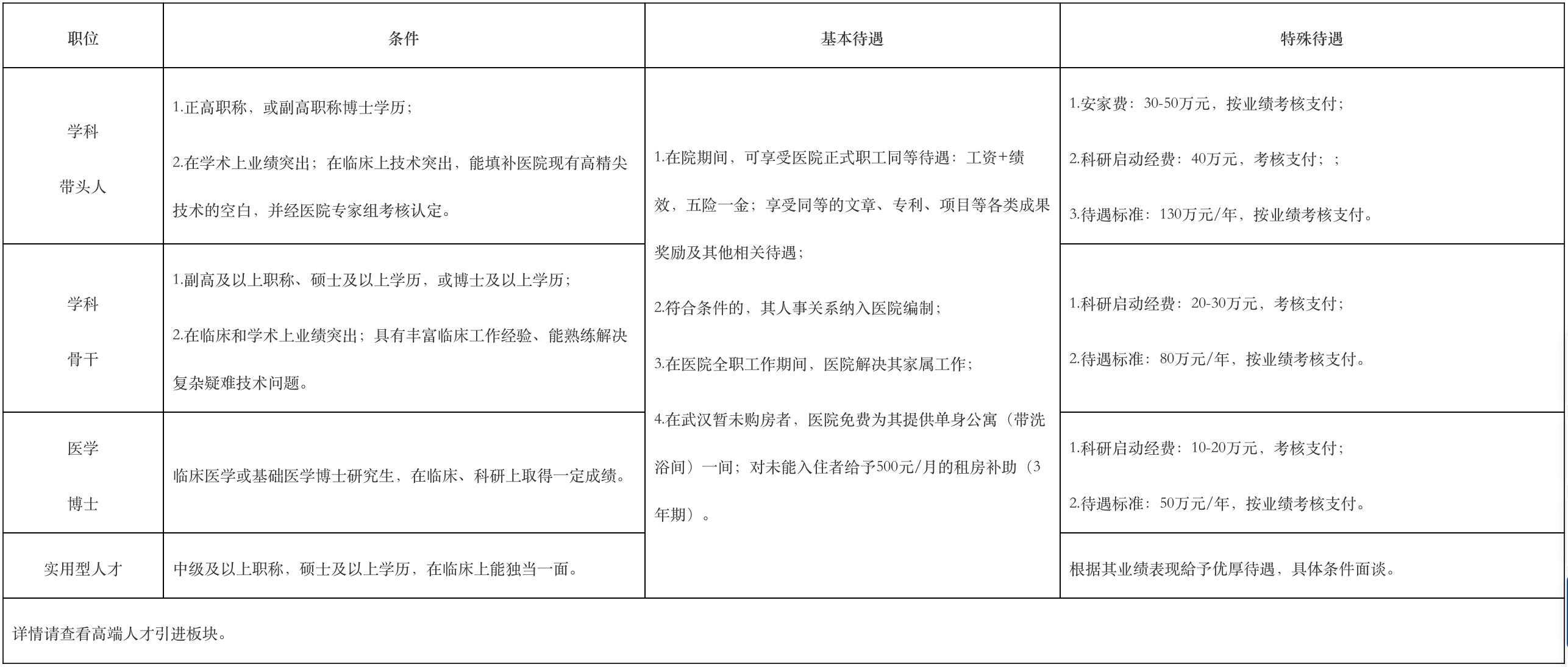 一经录用,签订劳动合同、聘用合同,执行国家有关政策及医院相关规定;同等享受院内晋升、晋级及干部提拔相关政策。高层次人才待遇面议。