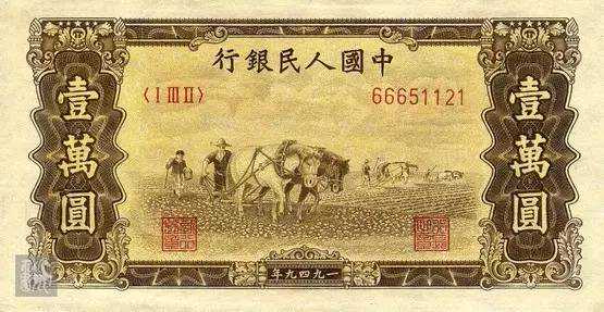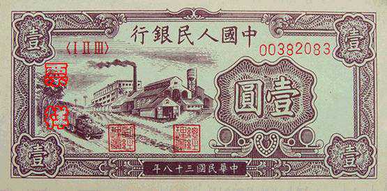 第一套人民币纸币第一套人民币1948年12月1日~1953年12月陆续发行。只有纸币,共有12种面值,57种图案,62种版别。第一套人民币于1955年5月15日起停止流通。
