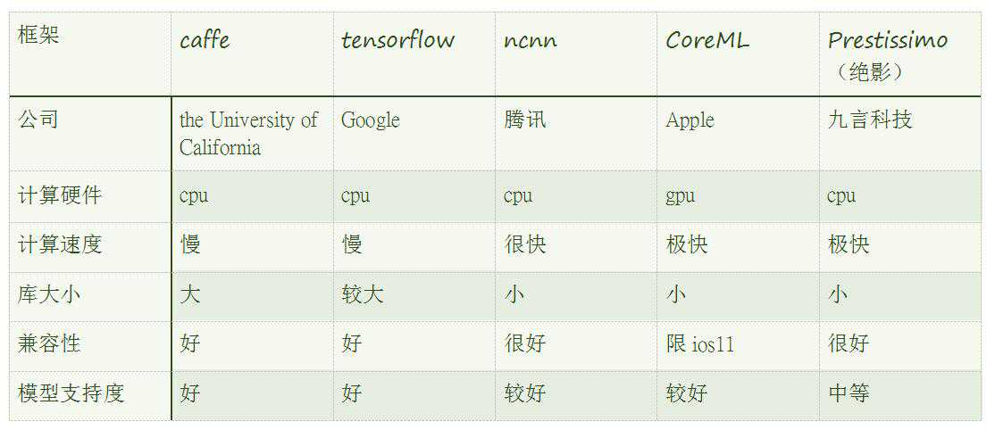 3、兼容性要好,in用户量大而且杂,涉及ios跟android各种各样的机型,需要我们的深度学习框架能兼容ios和android的各个版本。