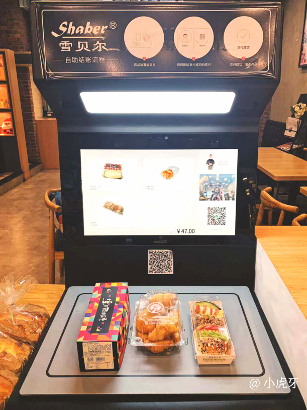 原来,这家店全新配备了一个人工智能结算台,小虎牙就是冲着它来的!