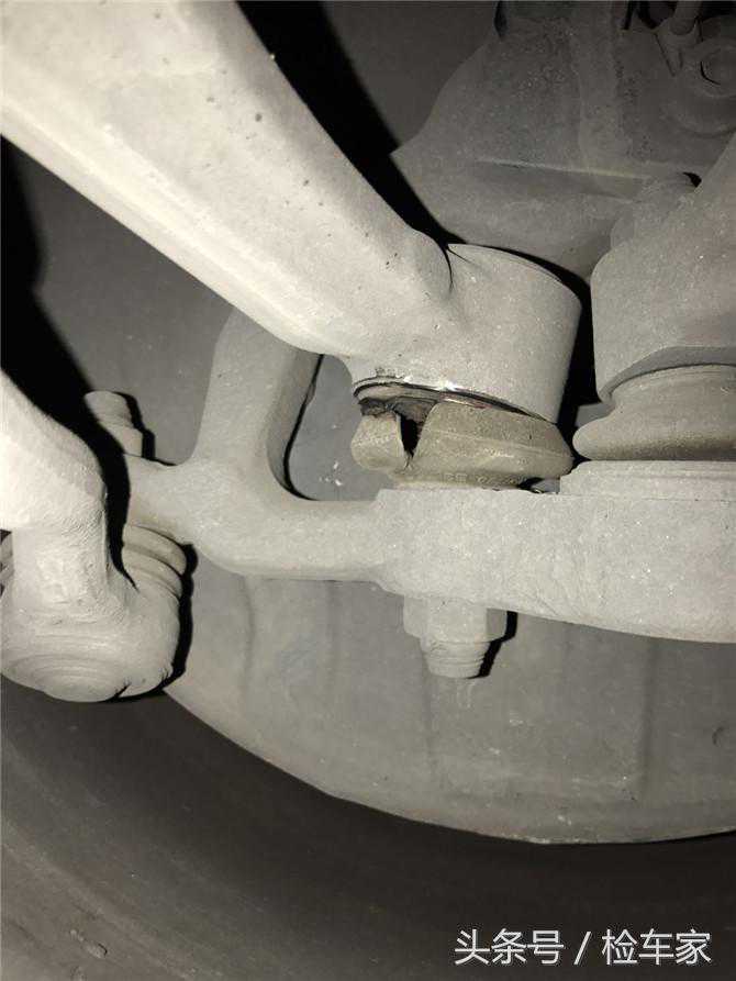 看上图是元宝梁支架的螺丝,拆卸痕迹很明显,双向受力!紧接着小编对整个元宝梁的螺丝进行了检测,检测发现均有拧动的痕迹,看来元宝梁是有过拆卸。