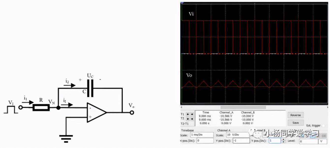 图8(a)积分电路(b)输入与输出波形