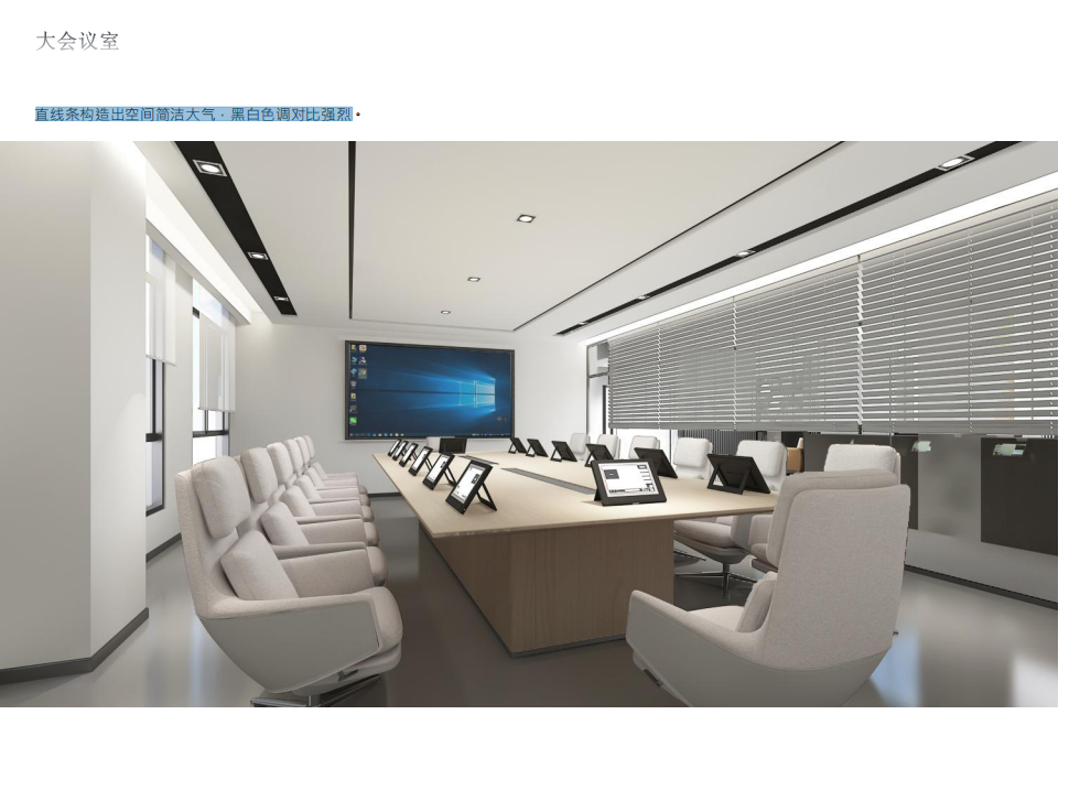 大会议室:直线条构造出空间简洁大气,黑白色调对比强烈