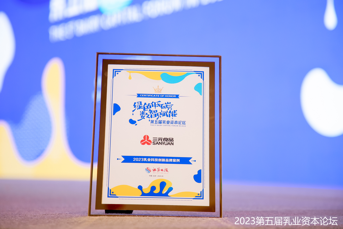 三元食品荣膺“2023乳业科技创新品牌案例”奖
