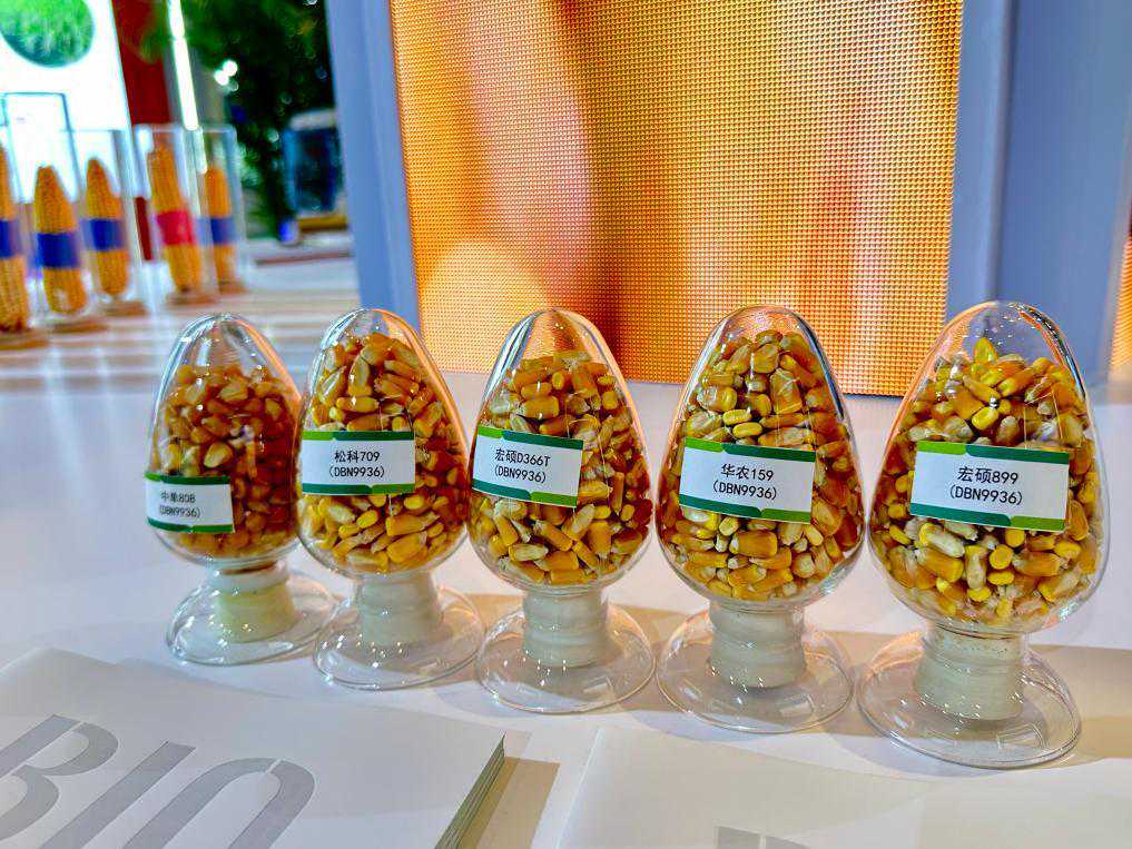 2024国际种业科技博览会上展示的不同品种特性的玉米种子。新华社记者袁睿摄