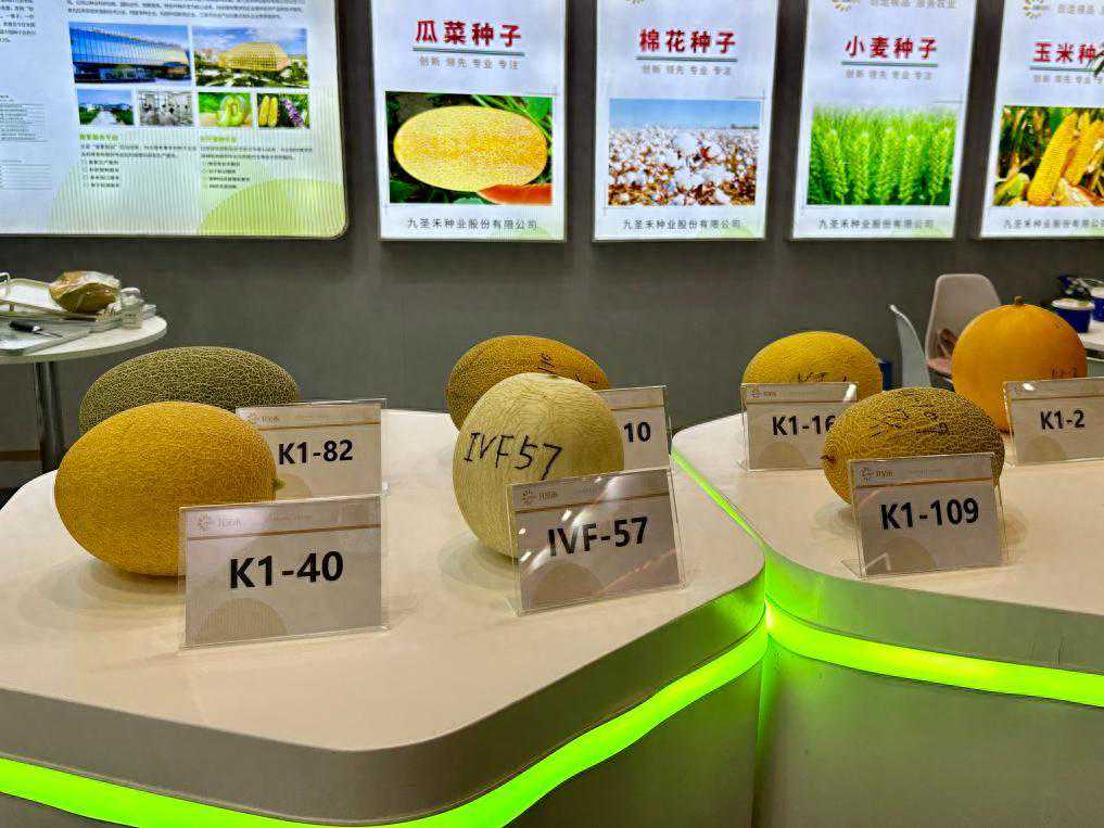 2024国际种业科技博览会上展示的新品种蜜瓜。新华社记者袁睿摄