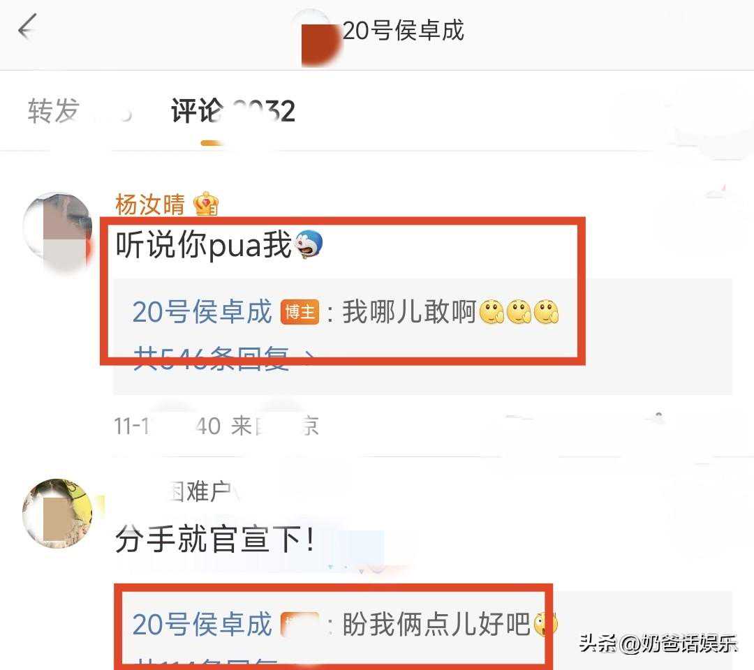 因为杨汝晴是在侯卓成这篇小作文下留了言:听说你Pua我!