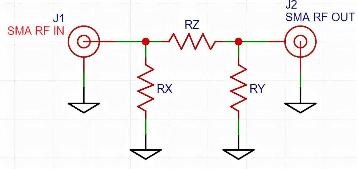 网上的可调衰减器太贵了,买不起,DIY了两个π型衰减器。衰减器的电路如下: