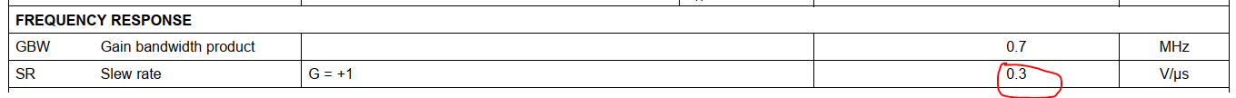 在很多运放的数据手册中经常出现小信号(SmallSignal)就是因为压摆率的原因,单位增益、频率响应往往是在小信号时测得的。