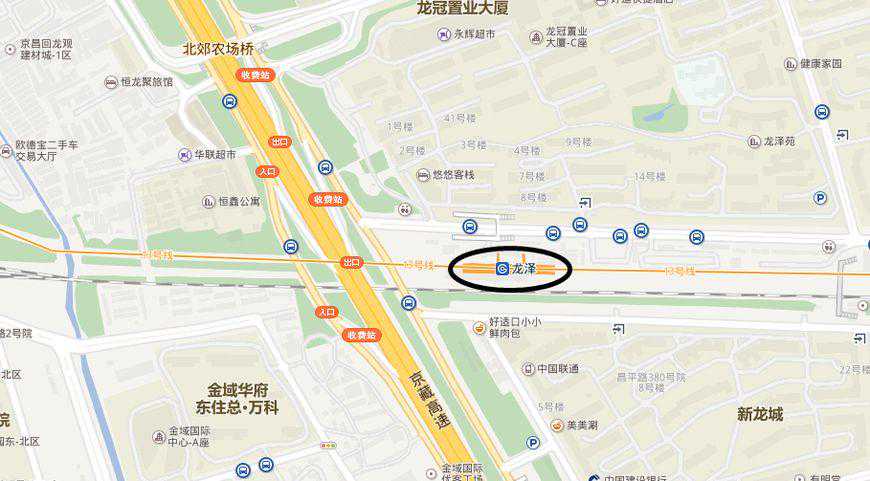北京地铁13号线的龙泽站附近的地图如下所示。