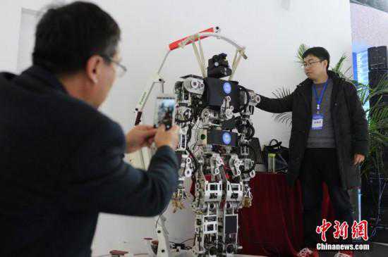 12月18日,参观者拍摄“仿人双足救援智能机器人”。据介绍,这是中国首台以实施危险环境救援为目标的全尺寸人形智能机器人。当日,安徽省庆祝改革开放40周年科技创新成果展在合肥举行,展览汇集了科研院所、大专院校、知名企业等1549件展品。中新社记者张娅子摄
