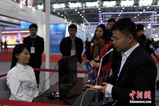 12月18日,能够辅助医生完成问诊的中科大机器人美女“医佳”吸引参观者。当日,安徽省庆祝改革开放40周年科技创新成果展在合肥举行,展览汇集了科研院所、大专院校、知名企业等1549件展品。中新社记者张娅子摄