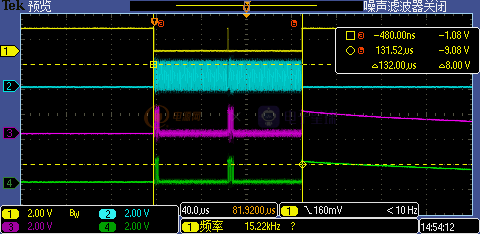 这种情况下,Flash端会有两次完整的1KBPrefetch操作,第一次Prefetch操作读取了0x60002400处的1KB,第二次Prefetch操作读取了0x60002800处的1KB。因为有D-Cache的存在,第二次Prefetch操作有了足够时间去完成,不用额外插入软延时去避免其被while(1)循环回来的下一次访问需求打断了: