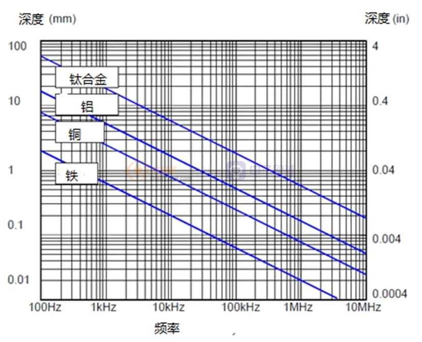 图4.频率对材料的标准穿透深度的影响