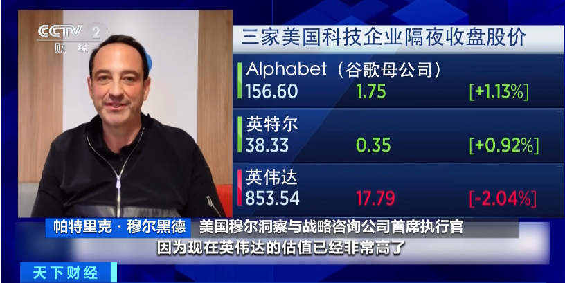 美国穆尔洞察与战略咨询公司首席执行官帕特里克·穆尔黑德:我认为英伟达股价下挫是交易员们获利了结,因为现在英伟达的估值已经非常高了,而目前我还没看到任何证据能让我相信英伟达可能会遭遇重大挑战,我需要看到AMD和英特尔明确表示他们的客户更多了。