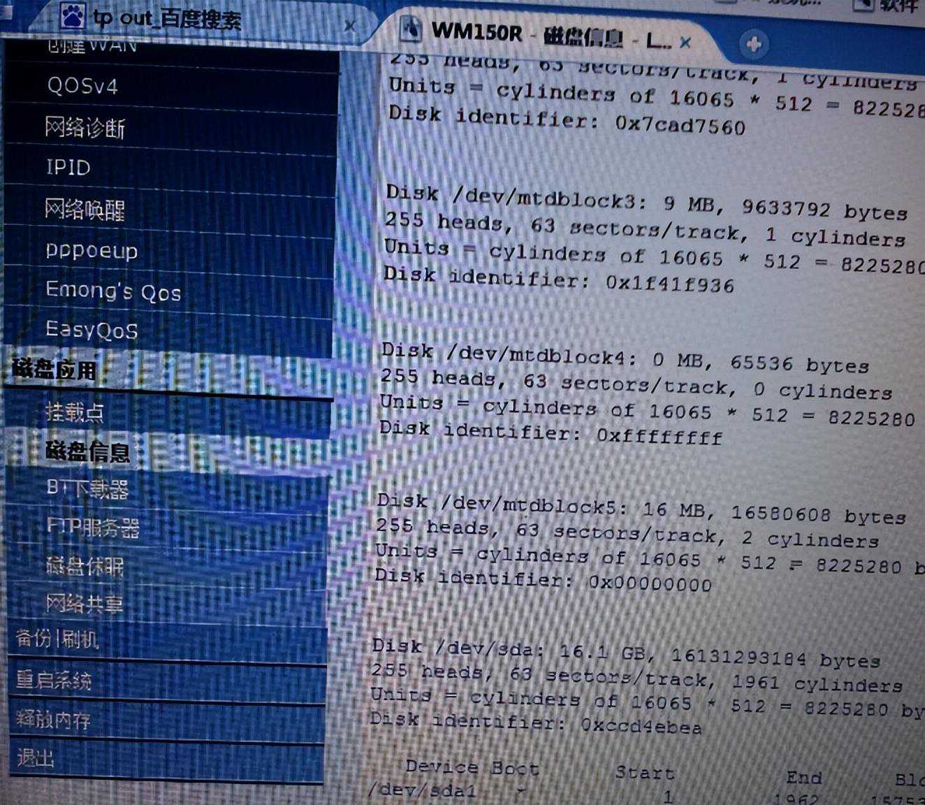 -------------------------上电测试,通过WEB正常进入路由器管理页面,在磁盘信息栏中应可以看到对应的磁盘设备---------------------------(继续)