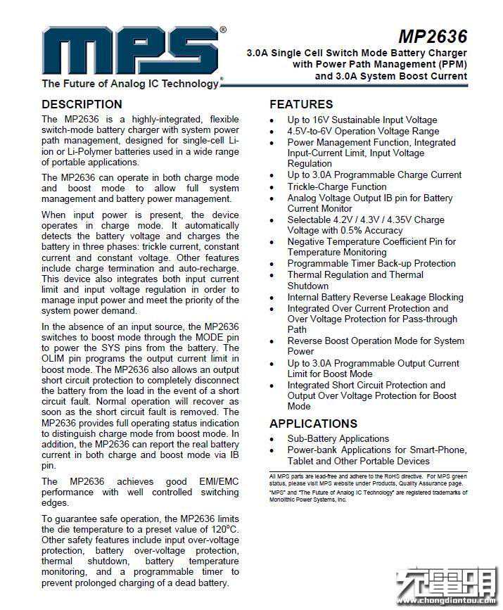右边MPSMP2636多合一芯片,同步整流充放IC,最大3A放电3A充电,支持4.2多种电池规格。MP2636是一个高度集成的、灵活的开关模式电池充电器系统、电源路径管理。广泛用于便携式锂离子电池或锂聚合物电池。MP2636可以同时充电模式和升压模式以允许完整的系统管理和电池电源管理。MP2636将充电PWM升压PWM集合成单一颗PWM。