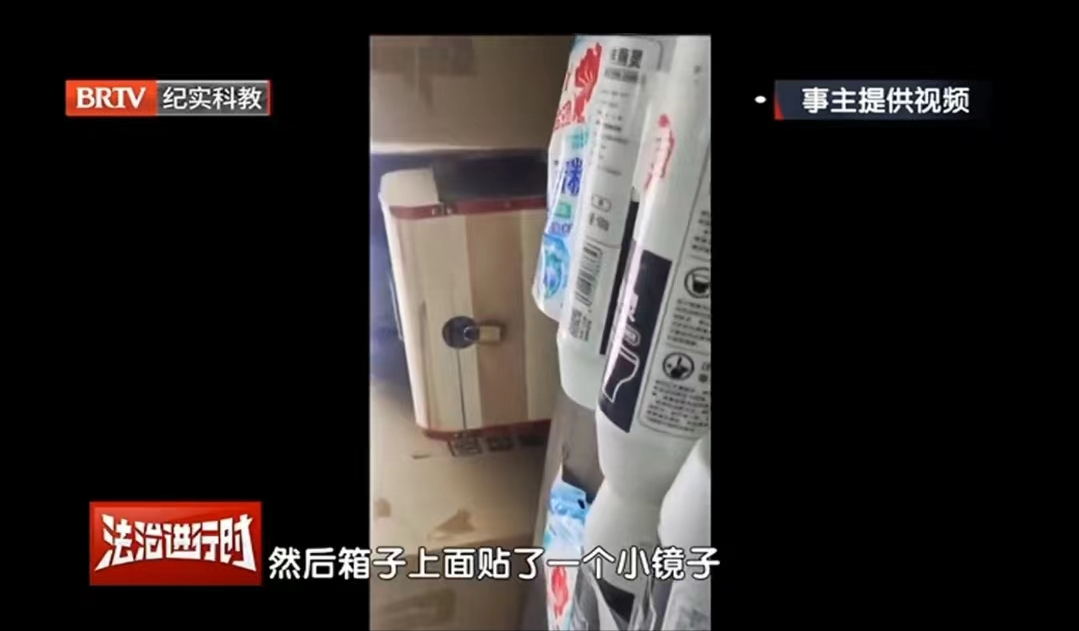 女厕所的储物间门是被锁起来的,不知道里面是什么东西,该女员工出于好奇就低头看了一眼,发现蹲坑对面有一个箱子,箱子上面贴了一个小镜子。