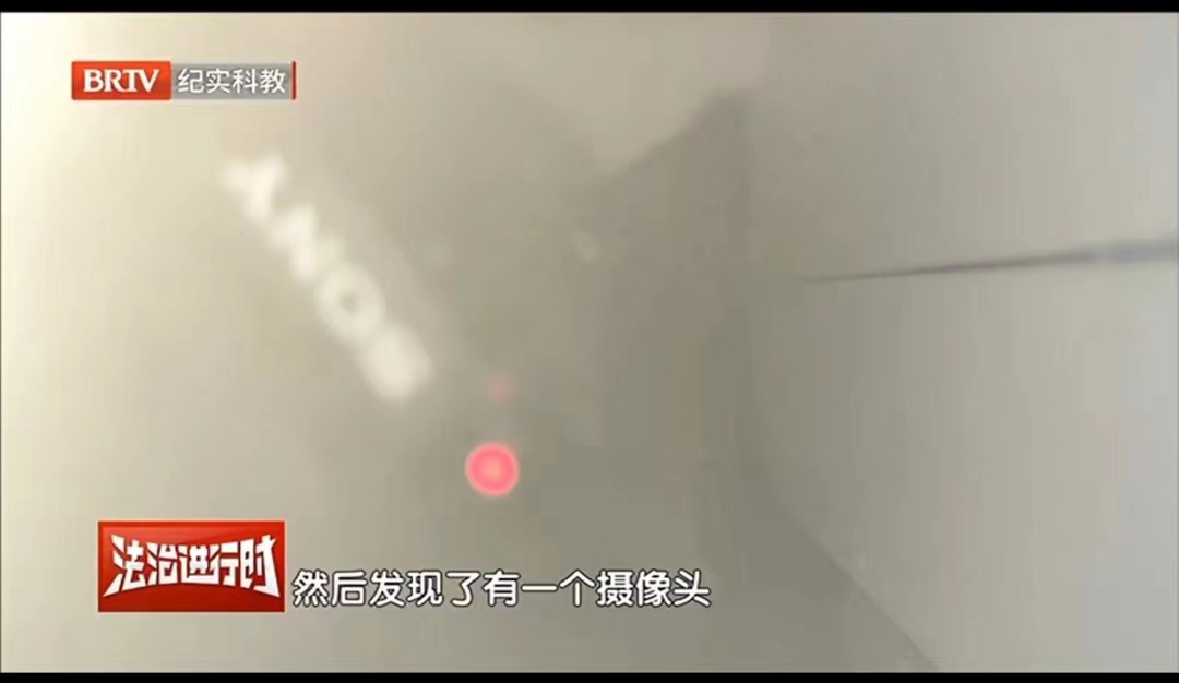 经过多次观察,小云确认箱子上的小镜子是双面镜,于是小云就想起网上说的验证双面镜是否安全的方法,照着一试,关掉厕所灯光用手电筒一照,发现了一个摄像头不断闪红灯。