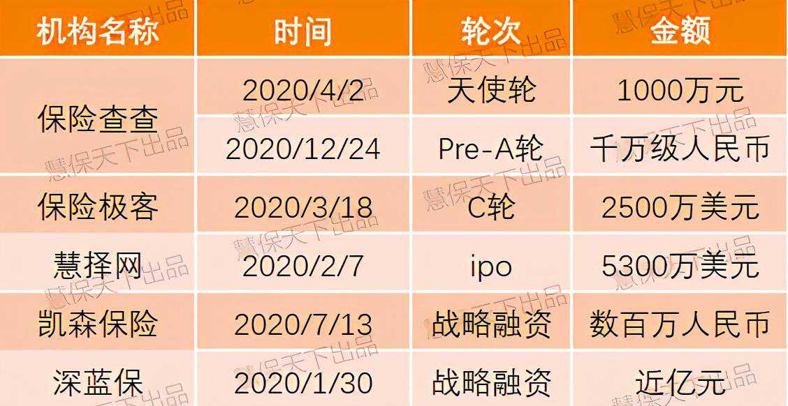 5000亿元的保险销售环节最具想象空间,2020年5家公司累计融资超6亿元