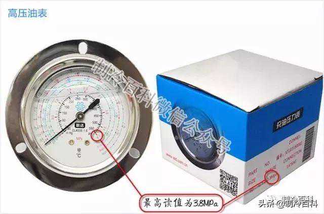 2、高压表,如一台冷水机冷媒使用R22,运行时高压压力1.8MPa对应的冷凝温度约为50度,如一台冷水机冷媒使用R134a,运行时高压压力1.4MPa对应的冷凝温度约为55度。