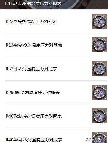 1、低压表,如一台制冷设备冷媒使用R22,运行时低压压力0.27MPa对应的温度约为-9度,如一台冷水机冷媒使用R134a,运行时低压压力0.3MPa对应的温度约为9度。