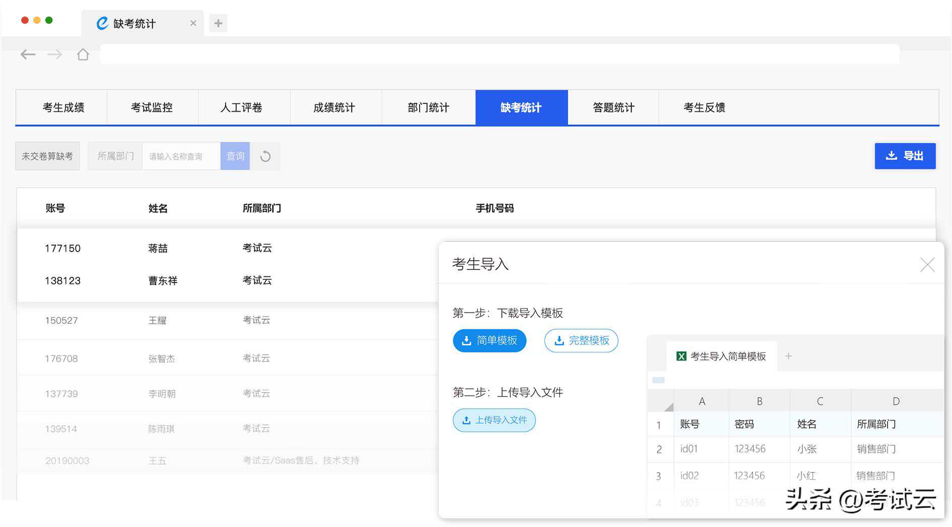 建立员工个人独立账号,指定对应部门参加练习和考试。